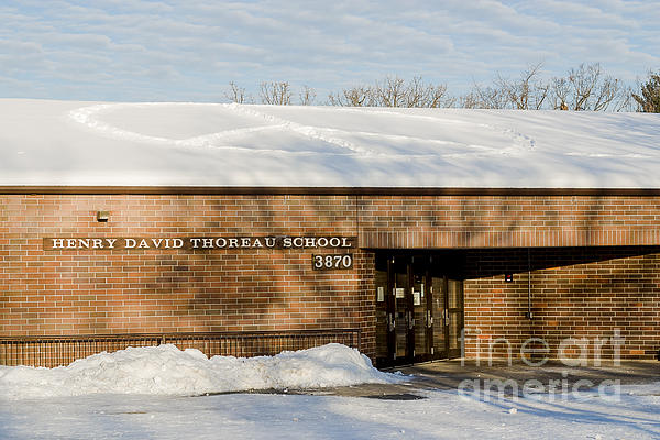 During the height of the Afghan and Iraqi wars we got a large snowfall in Madison. The school custodian went up on the roof and carved out a large peace sign. This peace sign is very fitting given the name of the elementary school our children go to (or have gone to)